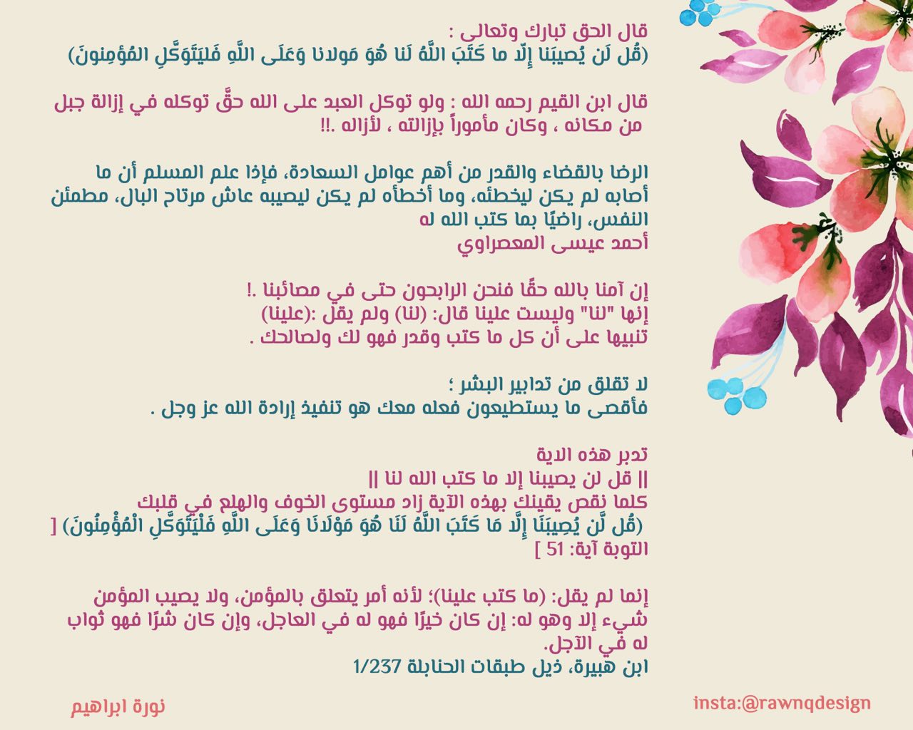 قال تعالى قل لن يصيبنا الا ما كتب الله لنا. ق ل ل ن ي ص يب ن ا إ لا م ا ك ت ب الل ه ل ن ا ه و م و لان ا و ع ل ى الل ه ف ل ي ت و ك ل الم ؤ م ن ون آل عمران. يقول تعالى ذكره مؤد ب ا نبي ه محمد ا صلى الله عليه وسلم. يقول تعالى ذكره مؤد ب ا نبي ه محمد ا صلى الله عليه وسلم. قال أبو جعفر الطبري في تفسيرها.